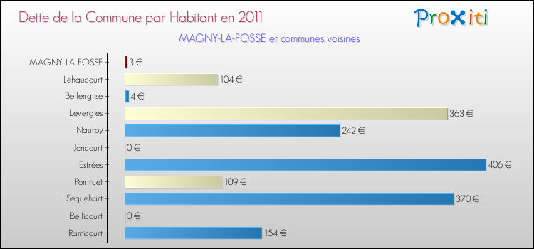 Par rapport aux 134 habitants de Magny-la-Fosse, en 2011 le poids de cette dette représente 3 € par habitant.