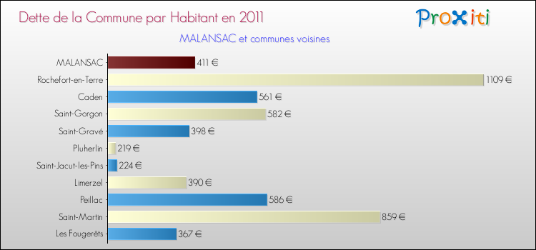 Par rapport aux 2 083 habitants de Malansac, en 2011 le poids de cette dette représente 411 € par habitant.