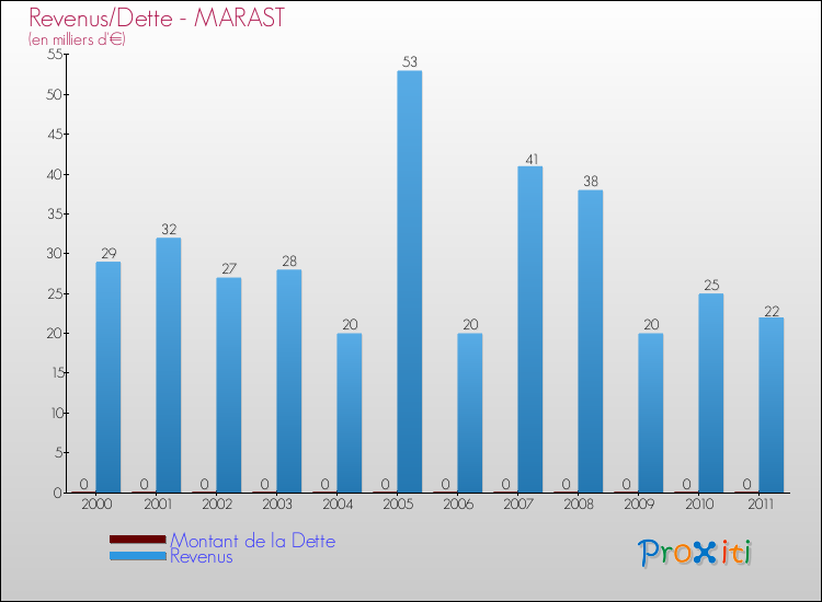 Comparaison Revenus/Dette de Marast (de 2000 à 2011)