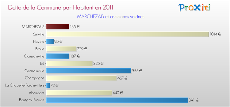 Par rapport aux 295 habitants de Marchezais, en 2011 le poids de cette dette représente 185 € par habitant.