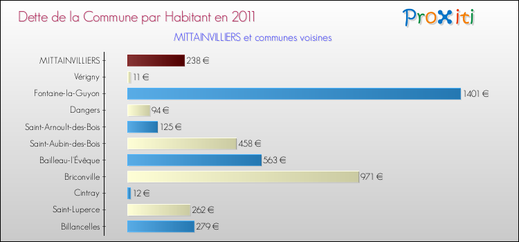 Par rapport aux 444 habitants de Mittainvilliers, en 2011 le poids de cette dette représente 238 € par habitant.