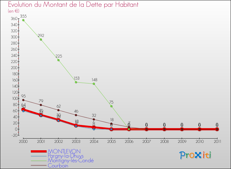 Par rapport aux 260 habitants de Montlevon, en 2011 le poids de cette dette représente 0 € par habitant.