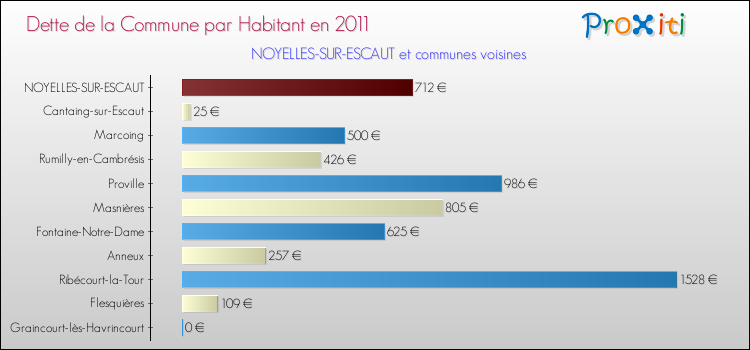 Par rapport aux 777 habitants de Noyelles-sur-Escaut, en 2011 le poids de cette dette représente 712 € par habitant.