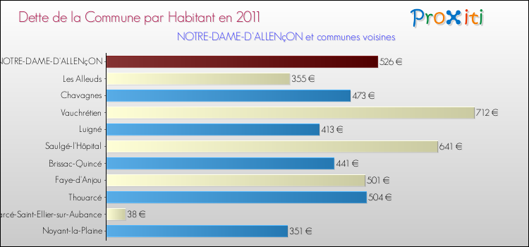 Comparaison de la dette par habitant de la commune en 2011 pour NOTRE-DAME-D'ALLENçON et les communes voisines