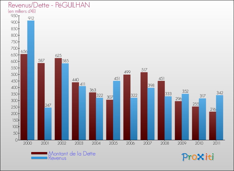 Par rapport aux 242 habitants de Péguilhan, en 2011 le poids de cette dette représente 892 € par habitant.