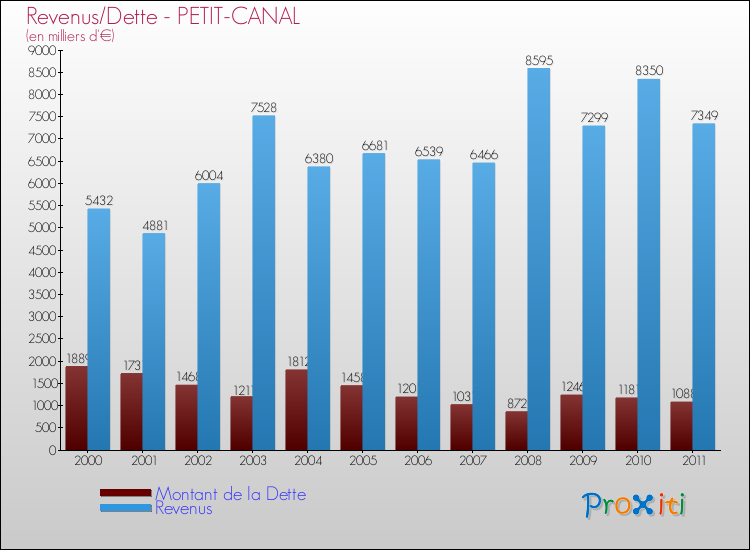 Comparaison Revenus/Dette de Petit-Canal (de 2000 à 2011)