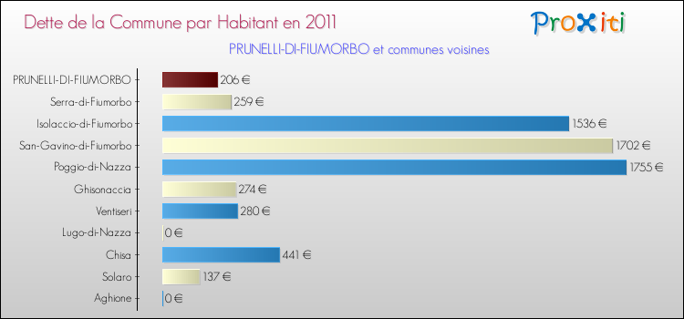 A Prunelli-di-Fiumorbo, ce montant de la dette est pourtant en baisse de 9.1 % par rapport à 2010.