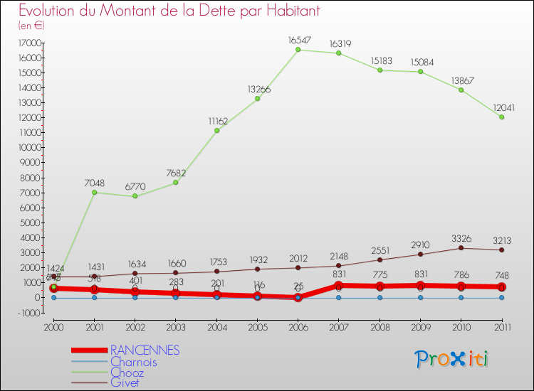 A Rancennes, la dette par habitant a donc augmenté de 15.61 % entre 2000 et 2011.