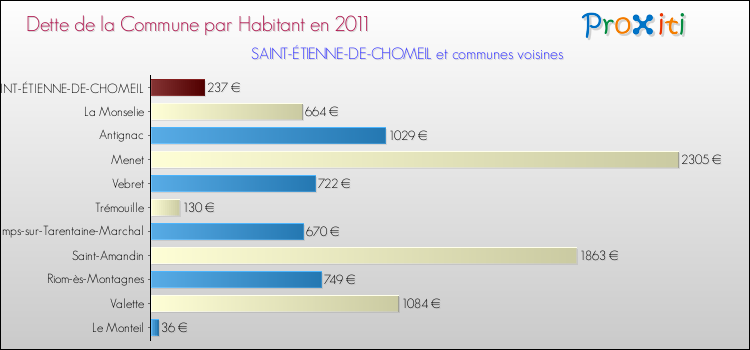 A Saint-Étienne-de-Chomeil, ce montant de la dette est pourtant en baisse de 21.21 % par rapport à 2010.