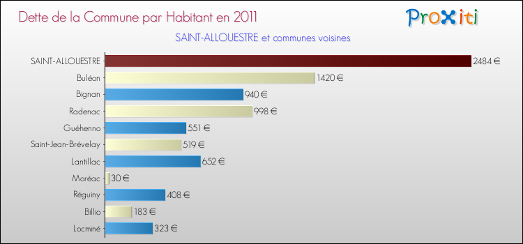 Par rapport aux 644 habitants de Saint-Allouestre, en 2011 le poids de cette dette représente 2484 € par habitant.