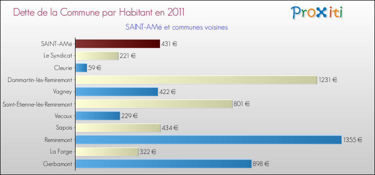 Par rapport aux 2 203 habitants de Saint-Amé, en 2011 le poids de cette dette représente 431 € par habitant.