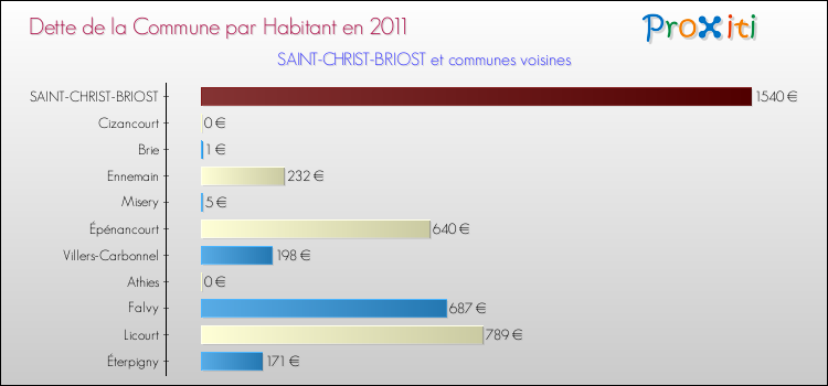 A Saint-Christ-Briost, la dette due par habitant de la commune en 2011 est donc plus élevée de 194.46 % que pour des communes similaires.
