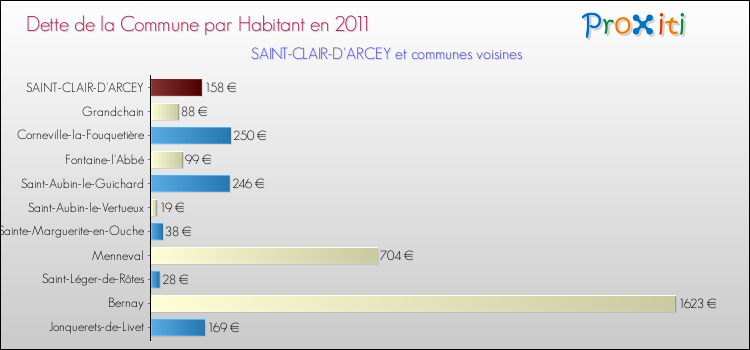 A Saint-Clair-d'Arcey, ce montant de la dette est pourtant en baisse de 16.13 % par rapport à 2010.