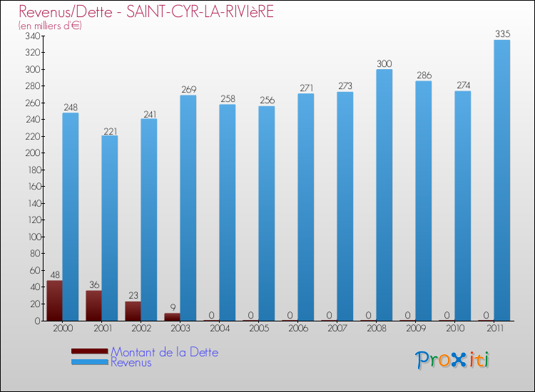 Comparaison Revenus/Dette de Saint-Cyr-la-Rivière (de 2000 à 2011)