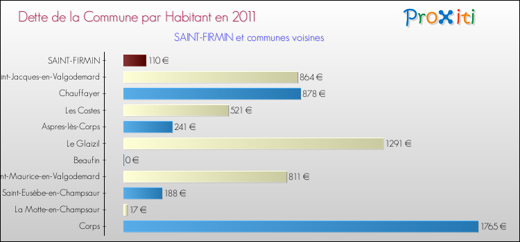 Par rapport aux 475 habitants de Saint-Firmin, en 2011 le poids de cette dette représente 110 € par habitant.