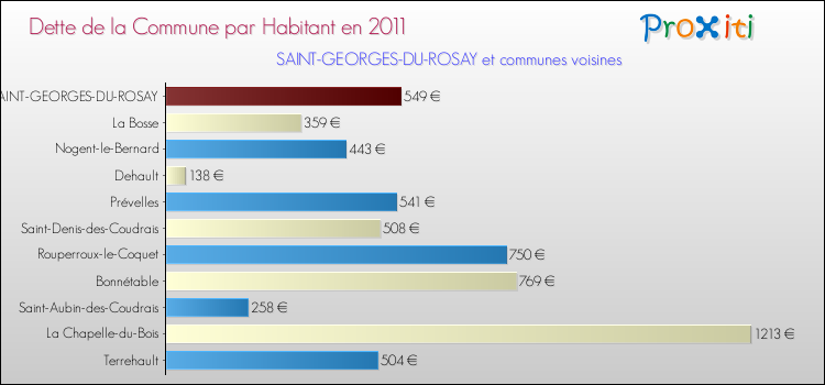 A Saint-Georges-du-Rosay, la dette due par habitant de la commune en 2011 est donc plus élevée de 4.97 % que pour des communes similaires.