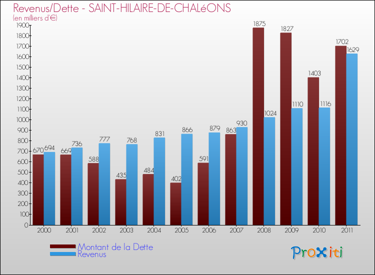 Comparaison Revenus/Dette de Saint-Hilaire-de-Chaléons (de 2000 à 2011)