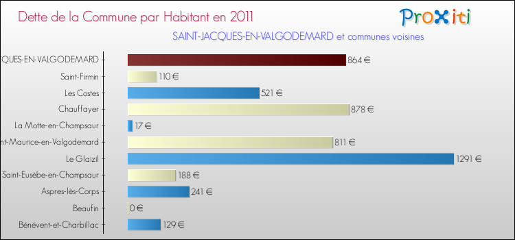 Par rapport aux 163 habitants de Saint-Jacques-en-Valgodemard, en 2011 le poids de cette dette représente 864 € par habitant.