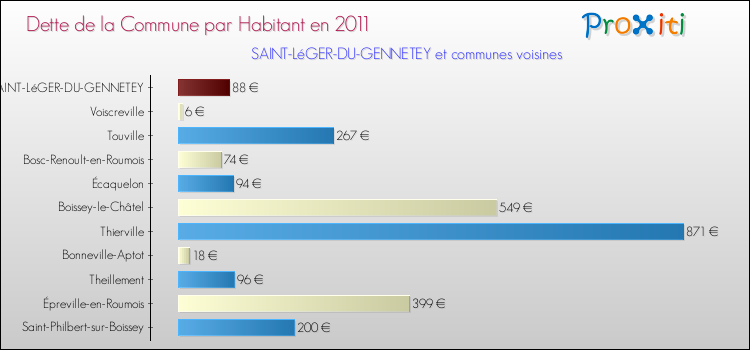 Par rapport aux 162 habitants de Saint-Léger-du-Gennetey, en 2011 le poids de cette dette représente 88 € par habitant.