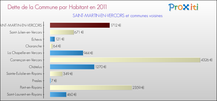 A Saint-Martin-en-Vercors, la dette due par habitant de la commune en 2011 est donc plus élevée de 227.34 % que pour des communes similaires.