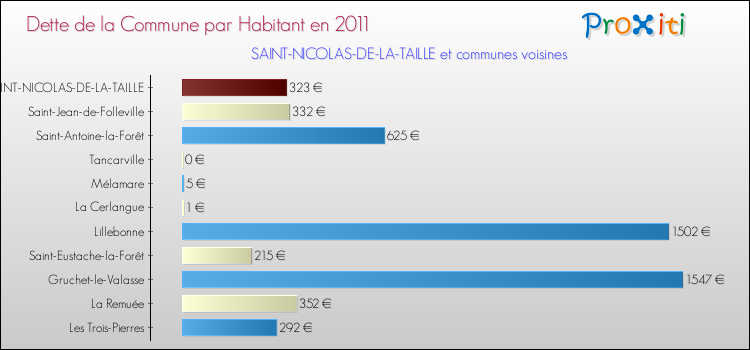 Par rapport aux 1 367 habitants de Saint-Nicolas-de-la-Taille, en 2011 le poids de cette dette représente 323 € par habitant.