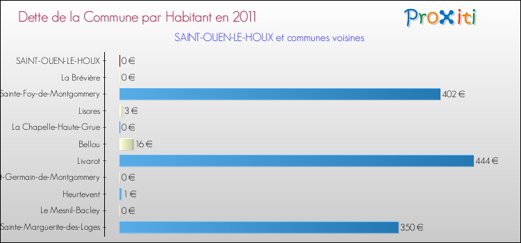 Pendant la même période, les communes françaises similaires à Saint-Ouen-le-Houx, ont vu leur dette par habitant augmenter de 23.59 % en moyenne entre 2000 et 2011.