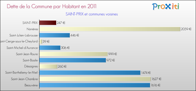 Par rapport aux 265 habitants de Saint-Prix, en 2011 le poids de cette dette représente 247 € par habitant.
