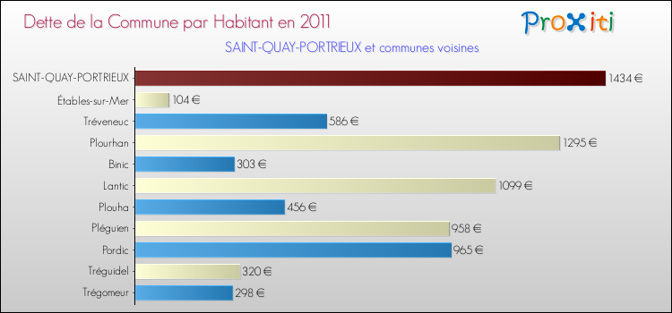 A Saint-Quay-Portrieux, la dette due par habitant de la commune en 2011 est donc plus élevée de 103.12 % que pour des communes similaires.