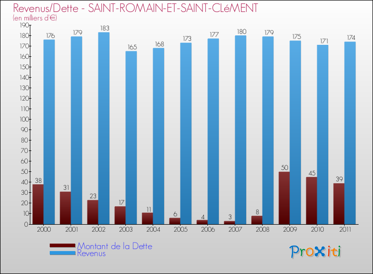 En 2011, Saint-Romain-et-Saint-Clément a dû ainsi payer 0 € pour rembourser sa dette.