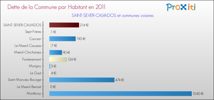Comparaison de la dette par habitant de la commune en 2011 pour SAINT-SEVER-CALVADOS et les communes voisines