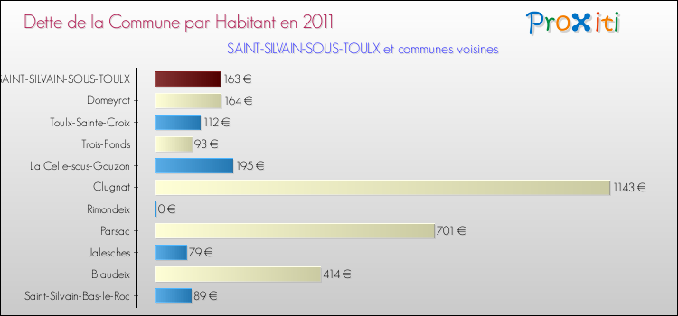 A noter : la valeur moyenne de la dette par habitant des communes françaises similaires à Saint-Silvain-sous-Toulx était de 503 € par habitant, en 2011.