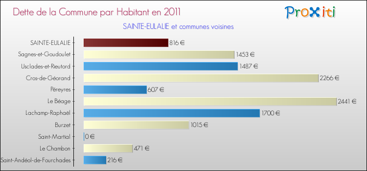 Par rapport aux 238 habitants de Sainte-Eulalie, en 2011 le poids de cette dette représente 816 € par habitant.