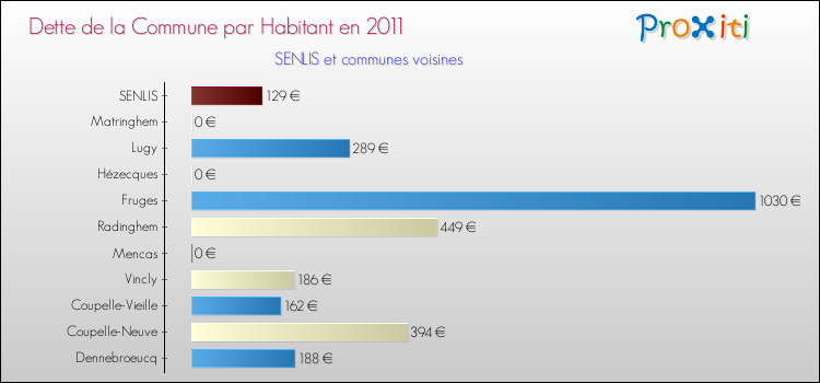 Par rapport aux 195 habitants de Senlis, en 2011 le poids de cette dette représente 129 € par habitant.