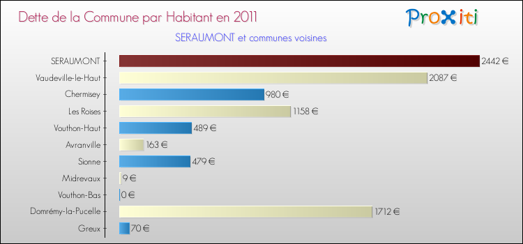 A Seraumont, la dette due par habitant de la commune en 2011 est donc plus élevée de 383.56 % que pour des communes similaires.