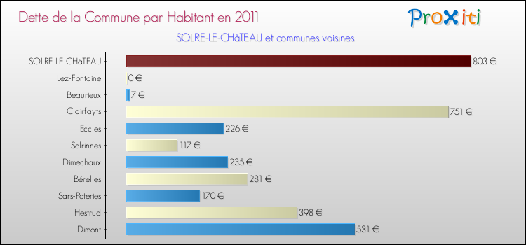 A Solre-le-Château, la dette due par habitant de la commune en 2011 est donc plus élevée de 24.69 % que pour des communes similaires.