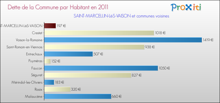 Par rapport aux 350 habitants de Saint-Marcellin-lès-Vaison, en 2011 le poids de cette dette représente 197 € par habitant.