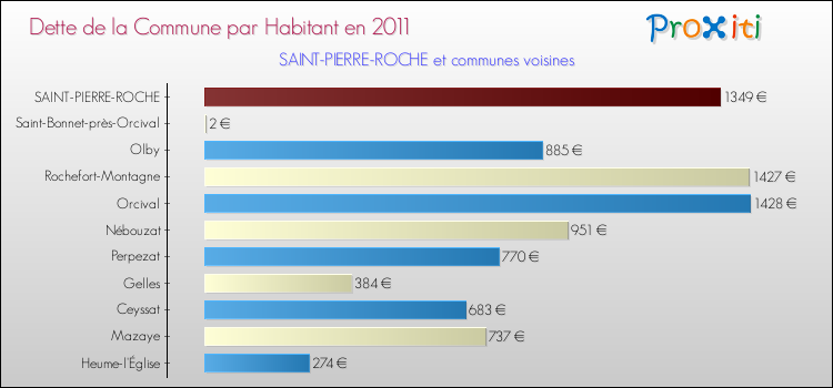 A Saint-Pierre-Roche, ce montant de la dette est en augmentation de 46.4 % par rapport à 2010.