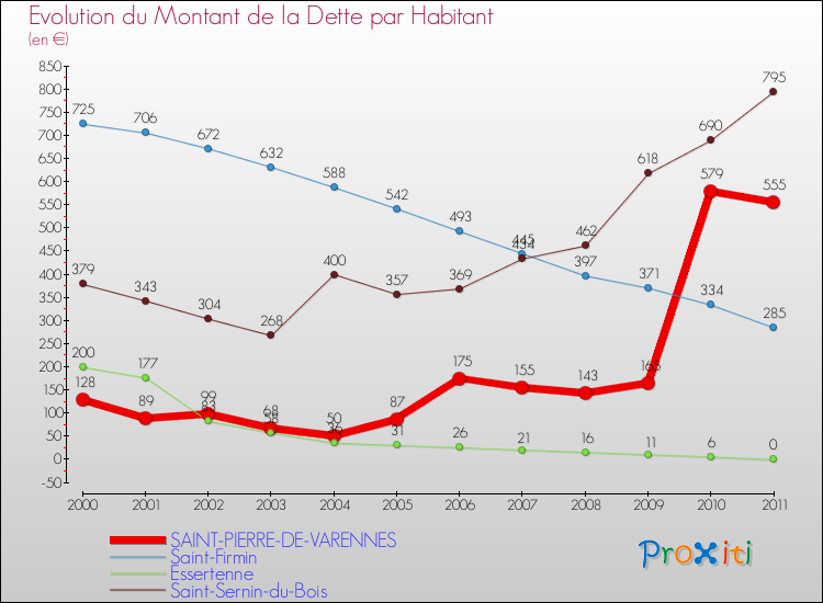 Par rapport aux 861 habitants de Saint-Pierre-de-Varennes, en 2011 le poids de cette dette représente 555 € par habitant.