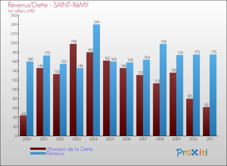 Comparaison Revenus/Dette de Saint-Rémy (de 2000 à 2011)