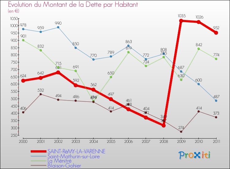 A Saint-Rémy-la-Varenne, la dette par habitant a donc augmenté de 52.56 % entre 2000 et 2011.