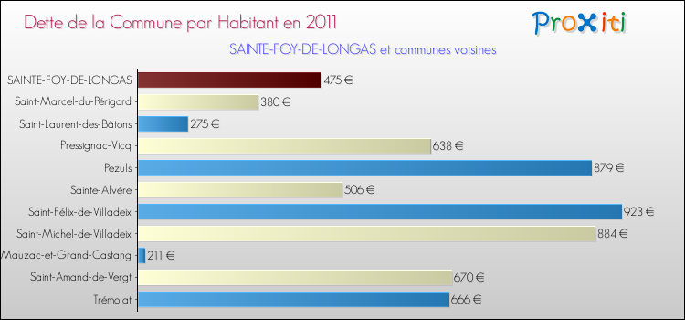 Par rapport aux 248 habitants de Sainte-Foy-de-Longas, en 2011 le poids de cette dette représente 475 € par habitant.
