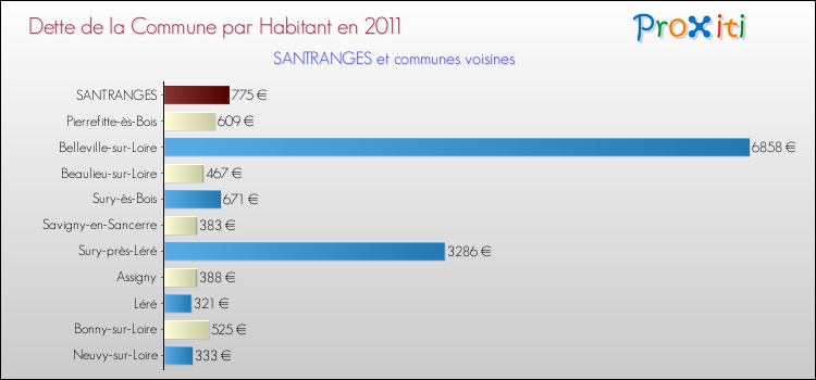 A Santranges, ce montant de la dette est en augmentation de 55.76 % par rapport à 2010.