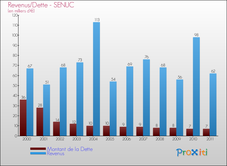 Comparaison Revenus/Dette de Senuc (de 2000 à 2011)
