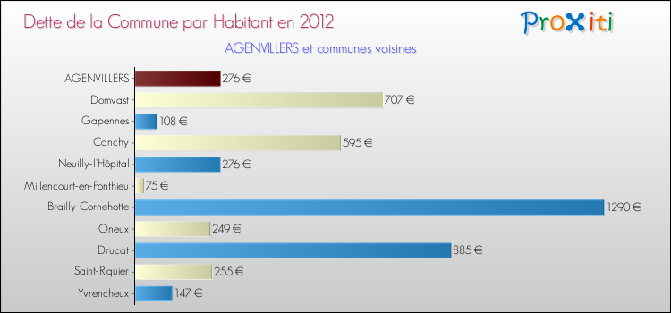 Par rapport aux 196 habitants de Agenvillers, en 2012 le poids de cette dette représente 276 € par habitant.