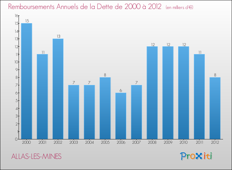 A Allas-les-Mines, ce montant de la dette est pourtant en baisse de 6.82 % par rapport à 2011.