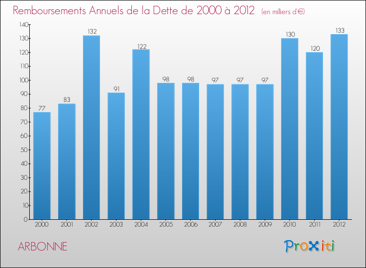 A Arbonne, ce montant de la dette est en augmentation de 18.46 % par rapport à 2011.