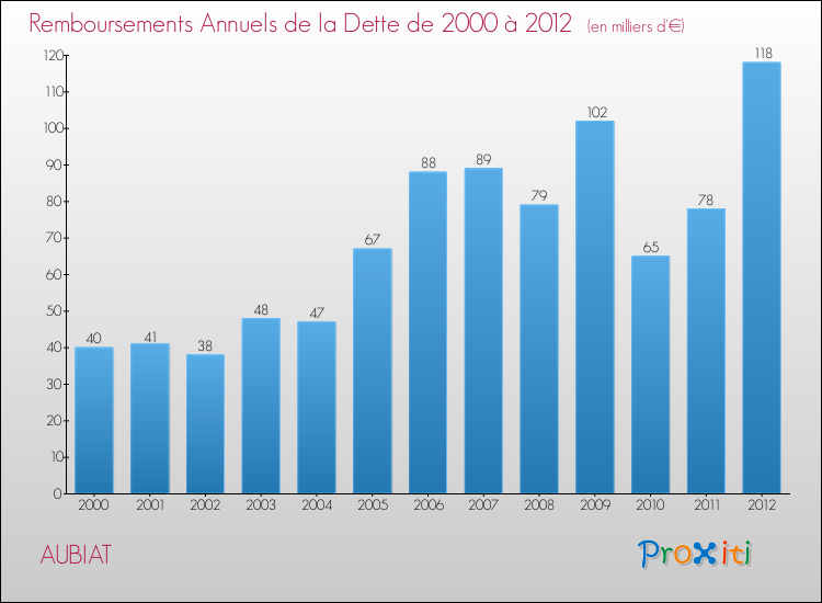 Par rapport aux 872 habitants de Aubiat, en 2012 le poids de cette dette représente 396 € par habitant.
