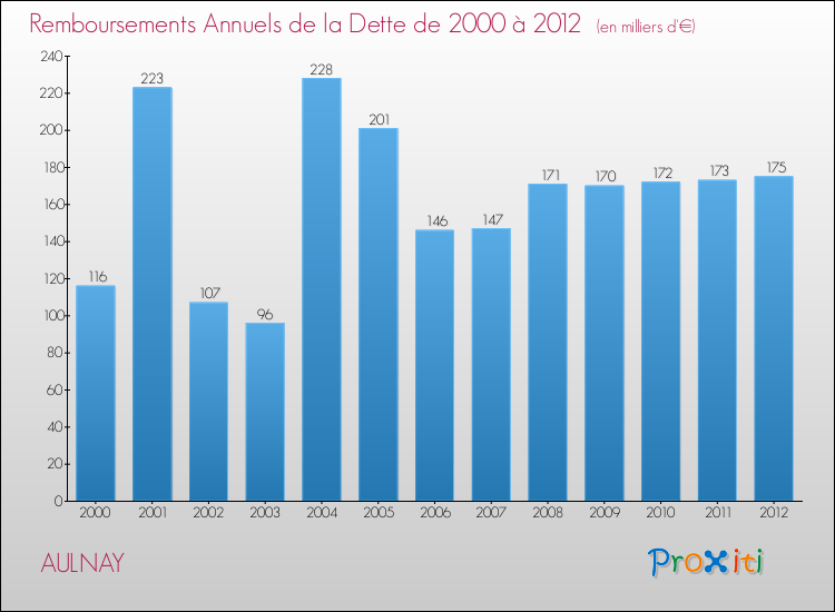Par rapport aux 1501 habitants de Aulnay, en 2012 le poids de cette dette représente 1223 € par habitant.
