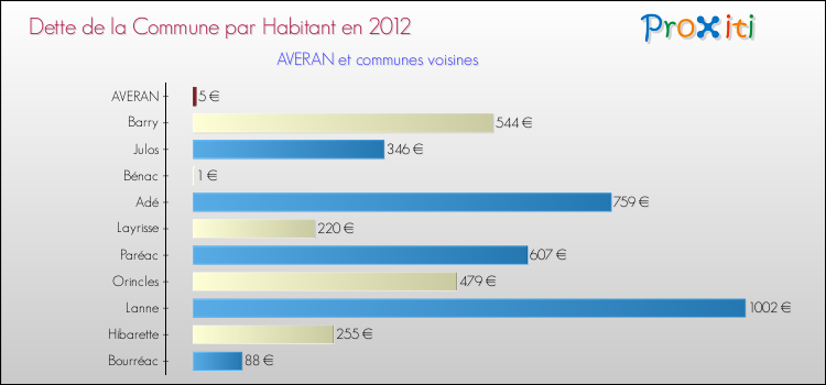 A noter : la valeur moyenne de la dette par habitant des communes françaises similaires à Averan était de 512 € par habitant, en 2012.