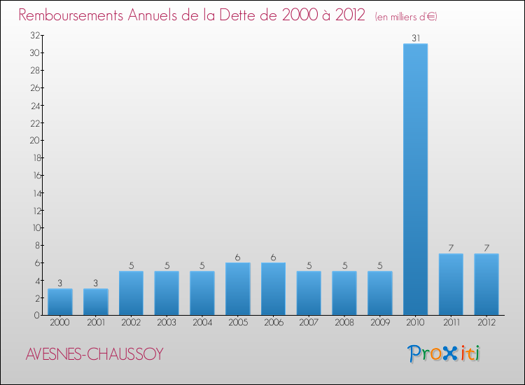 Annuités de la dette  pour AVESNES-CHAUSSOY de 2000 à 2012